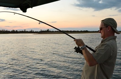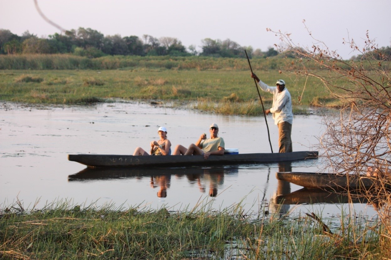 During the 2-night stay, Tiger fishing is the main activity, but also catching Bream and Barbel. Most of the crew get lucky, and all return their catch to the waters in the interest of the ecology. Speedboat rides are a great way to get further down the waterway, and view the scenery, checking the birdlife en-route, and occasionally stopping to study  a Fish Eagle atop a tall tree next to his hunting ground. The last afternoon, we hop into the wobbly Mokoro, and glide silently over the water-lily and through the reeds, thanks to our “poler” pushing us along. This is the primary transport in the region, and the traditional “dug-out” canoe is sourced from the big, old trees. This is a problem, as wood eventually rots, meaning another tree is cut down. Thanks to fibreglass, the Botswana Government sponsors these more durable versions of the dug-out canoe to help preserve the big trees.