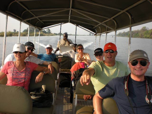 The 3 days and nights on the 3-star “Return to Eden” are comfortable, with outstanding “home-style” cooking. The temperatures have been pleasant, not requiring the use of the air conditioners in our cabins. The starry nights on the open deck allow for a bit of star-gazing – Jillie very excited at my laser pointer! The second night, we tie-up at the Southern shores of Lake Kariba, after a leisurely 4-hour  cruise back across the Lake. I have caught some dreaded lurgi, and spend most of my day feeling sorry for myself alone in the gently rocking cabin. I miss out on some great food, and leave the party-animals for an early night. The next day, thankfully, I am feeling better, only to hear that my flying partner, Russell, is not well, and he takes the day off in his cabin alone. Jillie keeps us posted during the day of his condition. Diseases like malaria, scurvy, typhoid, dysentery, TB, etc,  have apparently been discussed in his cabin...........the boy is clearly not a happy puppy.