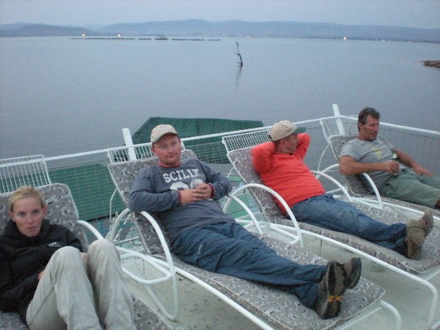 Our transfer buses are waiting for us, and deliver us to our house-boat at the small Kariba harbour, (via the bottle-store of course - the team decided the stock on board the boat would be insufficient). All aboard the “Return to Eden”, we annex our cabins for the next 3 nights, and set course for Antelope Island, enjoying some welcome mid-afternoon snacks. Captain Satiel, cook Chris (excellent chef as we were to find out), and deck-hand Panashi make us feel very welcome, seriously pampering us.