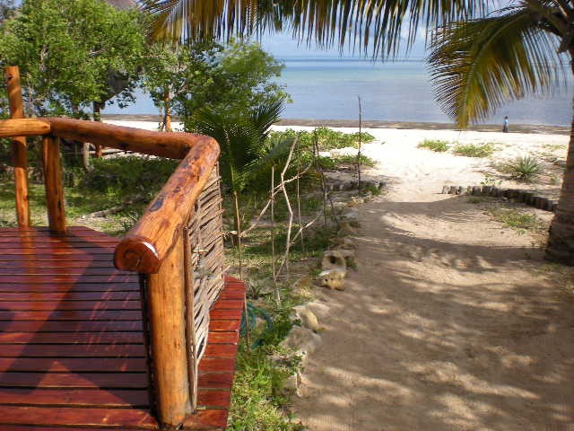 Sally greets us as we disembark, and the refrigerated wet face-cloth is refreshing as we wipe away the days sweat and dust. Andy wastes no time establishing the source of some beer, and we all meet up with him at the old sailing boat on the beach converted to a Bar, quaintly covered in thatch grass. The soft, fine sand underfoot, gently lapping waves, and waving Palm fronds suggest we are in Paradise, with the sun setting between some cloud layers finishing off the panorama – perfect accompaniment to the welcome ice-cold 2M beers! We meet Andy & Nola’s friends from Cape Town, Johan & Mandy, who arrived earlier in the day, and will return to Johannesburg with us.