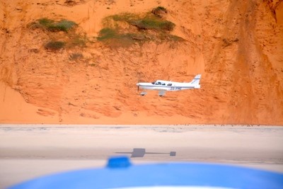 Over the shoreline, we do some exhilarating low-level flying along the mostly deserted white beaches, taking in the contrasting hues of blue of the waters – the shallower water is crystal clear and more turquoise, while the deeper water becomes a Royal blue. All pleasing to the senses, especially as the flying conditions are quite calm, and makes for a relaxed mood.  Jillie’s initial nervousness is soon overcome by this special experience, and the camera starts to click away..........