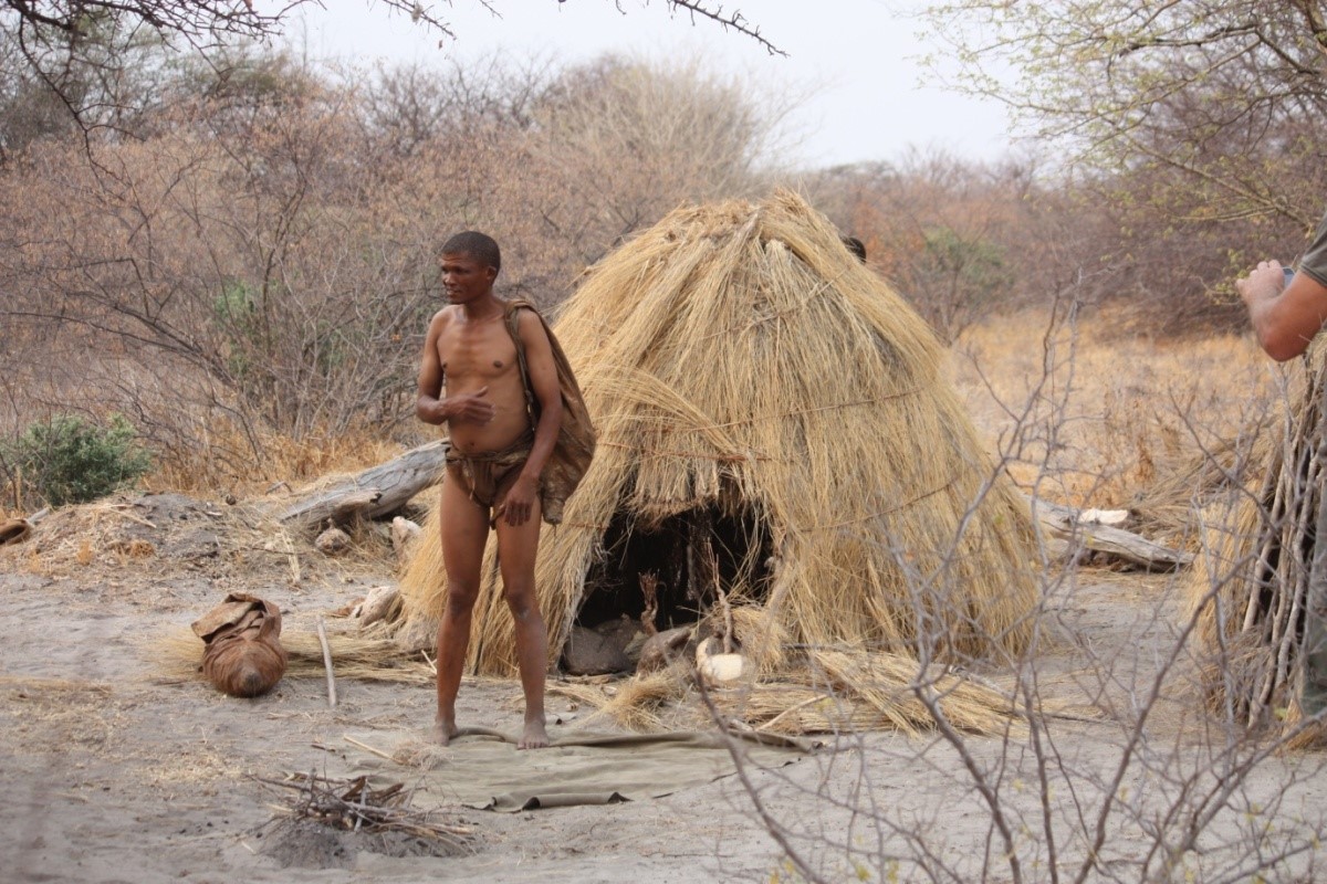 The afternoon's activity is a walk with the Bushmen, who enlighten us on their ways and disappearing culture. The collection of water in various ways in the Desert by these nomadic people is fascinating, compared to us who merely have to turn on a tap............ Starting a fire through friction alone is demonstrated, and most of the boys in the group try their hand, with limited success, confirming it is a practised art!