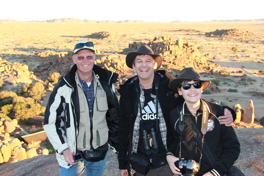 I am enjoying the warmth of my bed around 6 am as I hear the Landrover drone across the Desert, tyre pressures soft to navigate the trapping sand. They are all off to climb the dunes of Sossusvlei, a 2.5 hour drive away, and this needs to be done early before the heat gets too high. They climb the stunning contours of Dune 45, visit “dead pan”, as well as the Sossus pan, which uncharacteristically has a little water. This water arrived here via the Tsauchab River, and will go no further other than into the sand, or evaporate, as the dunes prevent the river ever reaching the ocean 70 km away.  The packed breakfasts are enjoyed before the journey back to Wolwedans Lodge, all content with the experience, and the children managing the dune up & down twice, as opposed to the “old people” once only..... The Lodge has saved them lunch, which is devoured after 3 pm, and they decide to spend the rest of the day relaxing – reading, catching up the diaries (yes, each child too!), and of course, the boys having fun around the (too cold for me) pool. Pre-dinner drinks are enjoyed around the open fire, well-stoked by me to try and stave off the cold – Sun gone = fridge door opened – amazing how quickly it gets cold. Then Migiel, Lodge manager, invites those wanting a special wine to visit the Cellar set in the sand underneath the Diningroom. Curious boys in tow, we file down the darkened steps into the musty air of the well-stocked wine cellar, and after a little “wine talk”, guests make their choices, and Uli picks out a top-class SA blend, which I am privileged to enjoy with him and Ines over another delightful Desert dinner. The family slink off for the night, Uli & I enjoy some after-dinner Cognac as a night-cap.